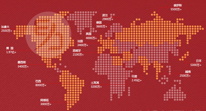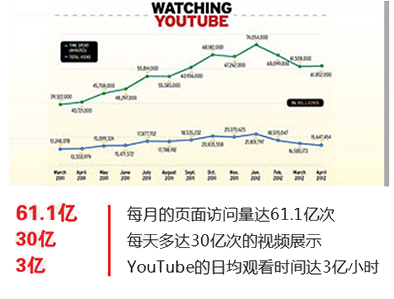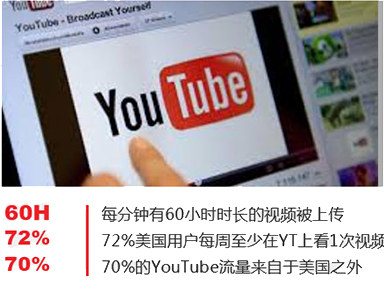 YouTube在全球36个国家和地区都有本地化的网站,适用的语言多达60个,每月有超过10亿人访问YouTube,观看YouTube视频的时间超过60亿小时。
