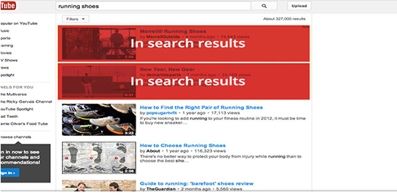 当访客使用YouTube搜索工具,搜索视频信息的时候,展示您的广告内容。