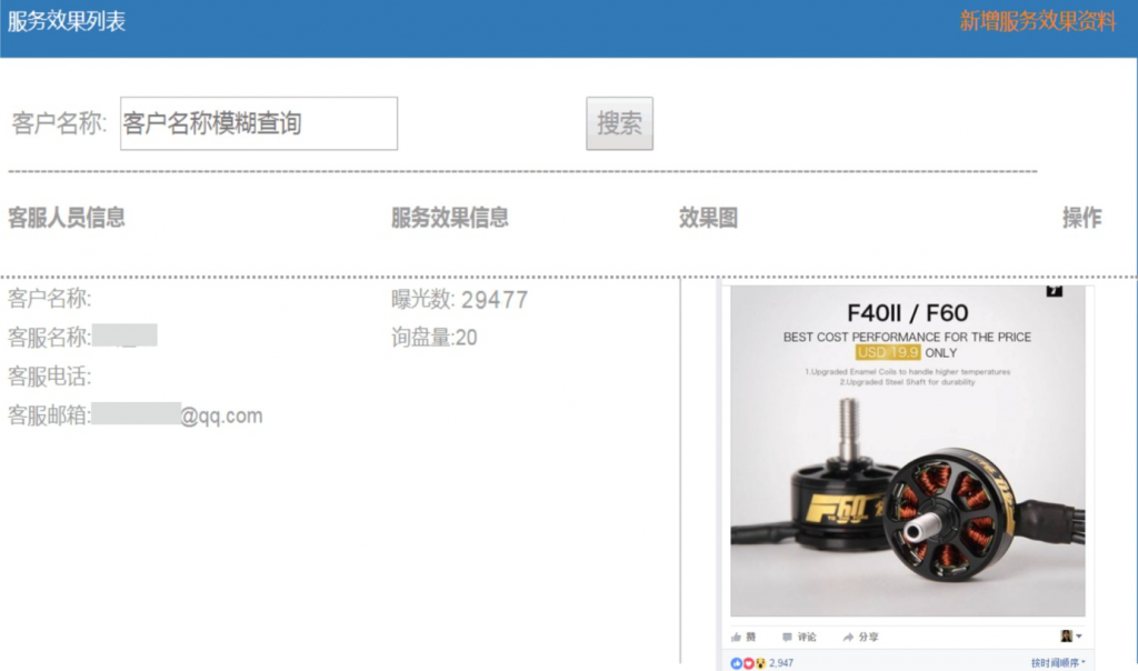 | 效果总结报告 | 月度FB主页运营报告1份/月 | ||